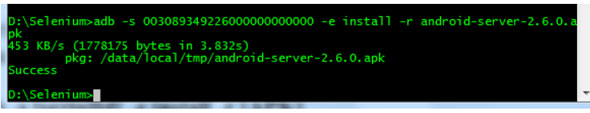 adb -s 003089349226000000000000 -e install -r android-server-2.6.0.apk