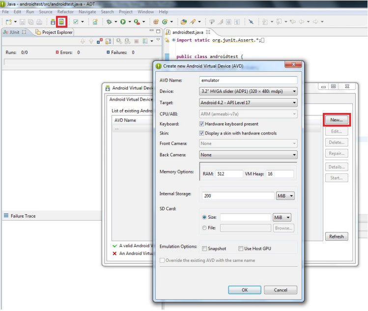 Presionamos el icono del dispositivo móvil (ADV) que está en el eclipse. Y crearemos un nuevo