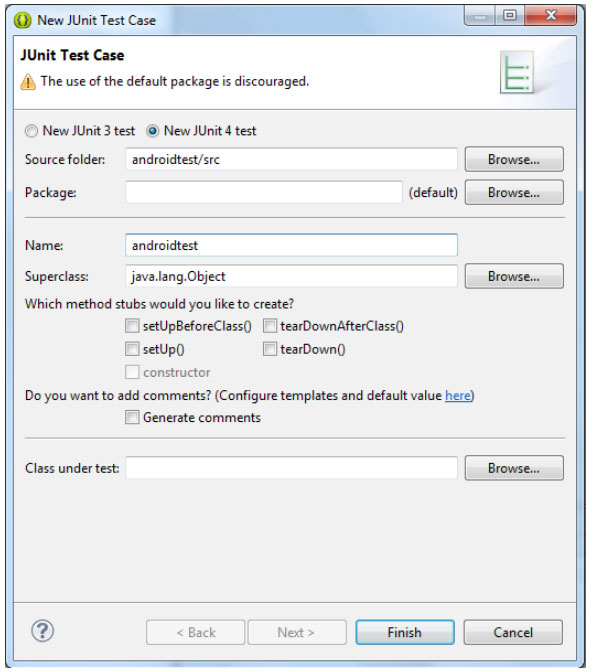 File >> New >> JUnit Test Case