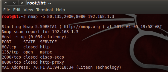 Nmap –p 80,135,2000,8080 192.168.1.3