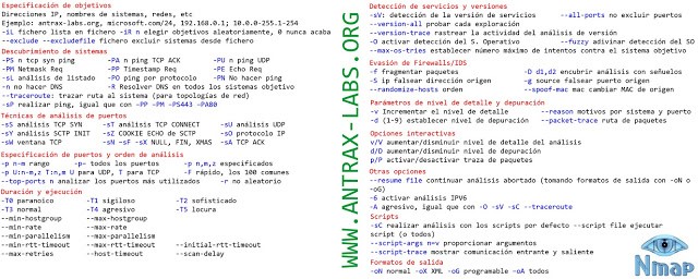 (Network Mapper o Mapeador de Redes) es una herramienta para scannear puertos abiertos. Se diseño para explorar grandes redes, aunque funciona a perfecto también para hacer mapeos a equipos individuales. A demás de puertos, también dice que servicio lo utiliza y sus versiones. Otra de las cosas que suele mostrar es que filtros o cortafuegos tiene, y a veces hasta el sistema operativo que tiene el equipo entre otras docenas de cosas.
