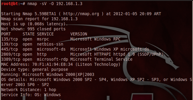 OS:SCAN(V=5.59BETA1%D=12/30%OT=21%CT=1%CU=30523%PV=Y%DS=1%DC=D%G=Y%M=0015F2 OS:%TM=4EFDC93D%P=i686-pc-linux-gnu)SEQ(SP=103%GCD=1%ISR=109%TI=Z%CI=Z%II=I OS:%TS=8)OPS(O1=M5B4ST11NW6%O2=M5B4ST11NW6%O3=M5B4NNT11NW6%O4=M5B4ST11NW6%O OS:5=M5B4ST11NW6%O6=M5B4ST11)WIN(W1=3890%W2=3890%W3=3890%W4=3890%W5=3890%W6 OS:=3890)ECN(R=Y%DF=Y%T=40%W=3908%O=M5B4NNSNW6%CC=Y%Q=)T1(R=Y%DF=Y%T=40%S=O OS:%A=S+%F=AS%RD=0%Q=)T2(R=N)T3(R=Y%DF=Y%T=40%W=3890%S=O%A=S+%F=AS%O=M5B4ST OS:11NW6%RD=0%Q=)T4(R=Y%DF=Y%T=40%W=0%S=A%A=Z%F=R%O=%RD=0%Q=)T5(R=Y%DF=Y%T= OS:40%W=0%S=Z%A=S+%F=AR%O=%RD=0%Q=)T6(R=Y%DF=Y%T=40%W=0%S=A%A=Z%F=R%O=%RD=0 OS:%Q=)T7(R=Y%DF=Y%T=40%W=0%S=Z%A=S+%F=AR%O=%RD=0%Q=)U1(R=Y%DF=N%T=40%IPL=1 OS:64%UN=0%RIPL=G%RID=G%RIPCK=G%RUCK=G%RUD=G)IE(R=Y%DFI=N%T=40%CD=S)
