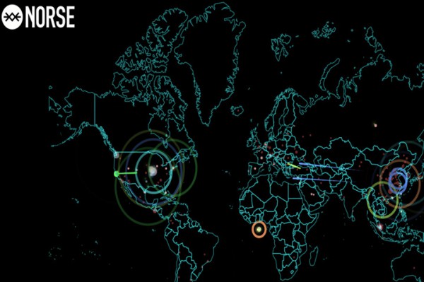 Existe una empresa llamada Norse, la cual muestra ciberataques en tiempo real. Norse Attack Map, Este mapa es hipnótico, podemos